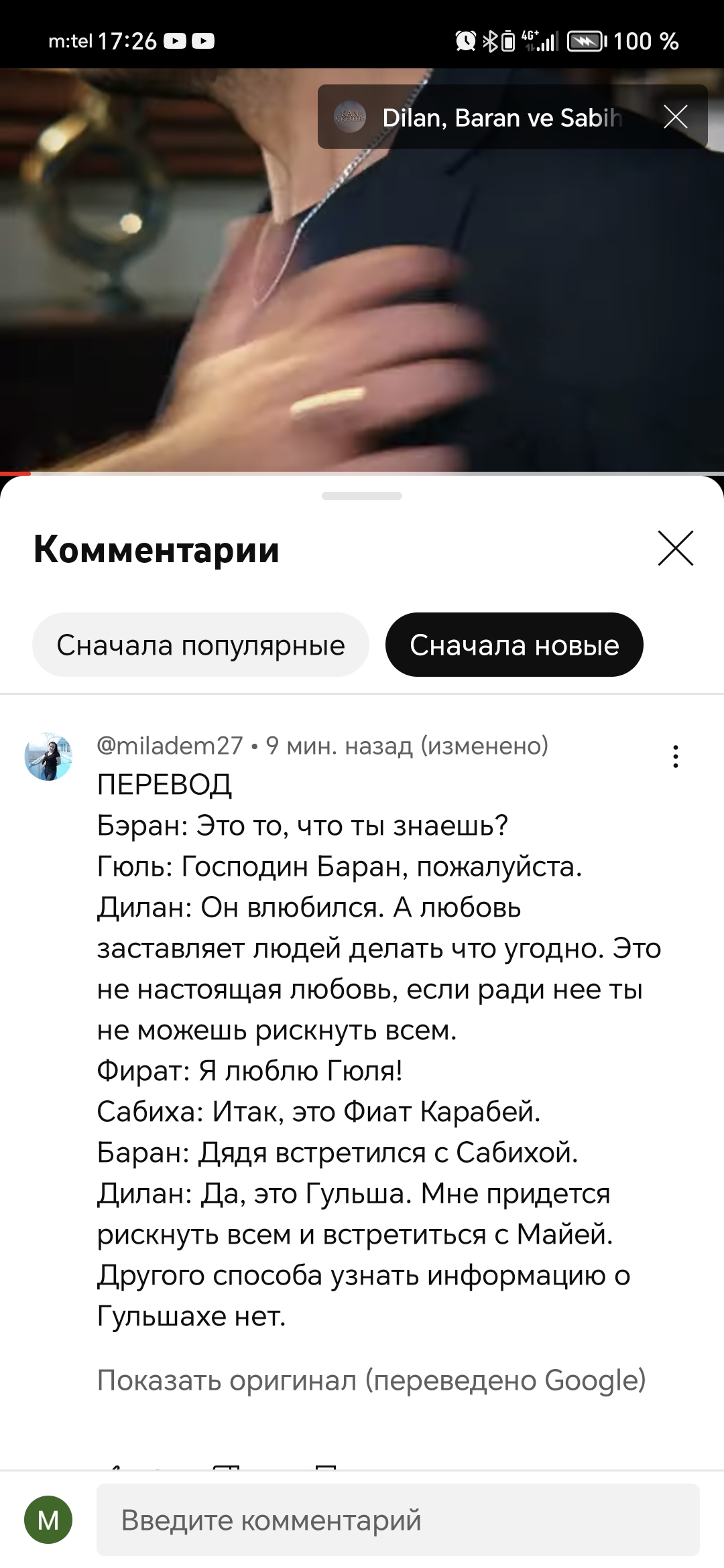 Почему то я думаю Гюльшах жива, она просто убежала от матери. Наверное она от рождения слышала о дочери которая от её забрали. Наверное её запретила всё , слишком много любовь тоже будет душить. Наверное где то живёт , может создала семью. С Бараном не знакома, божет быть и знакомы ,это Мая наверно подруга Гюльшах, и она правда знает. Почему то я подозреваю что, Барана люблина была темная лошадка рядом матери.Может быть она одноклассница Барана, школе она была серая Мишка рядом Гюльшах, её не кто не обращала внимания. А сейчас она мстит через матери Дилан. Не зря Баран сказал , что он влюбился первый раз, однокурсница сама влюблена была, как Баран сказал " ты моя подруга о тебя не когда не думал, и не подумаю", все это старуха ее мозги капал. А Дерья, он её терпел ради бабушки, она его не любила просто хотела стать Карабеем. Фират молодец кричал о своей любви. Дерья чтобы стать Карабеем, есть ещё Хасан 😁😁😁😁😁 Господи неужели Джеврие беременна, сбилась мечта 😁.