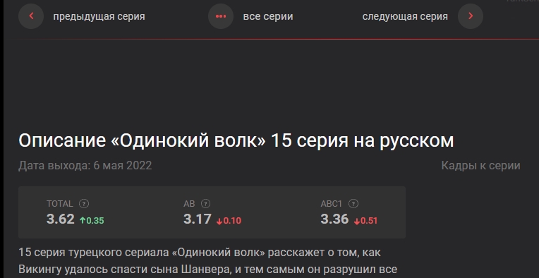 Рейтинг каждой серии указываем над описанием.
